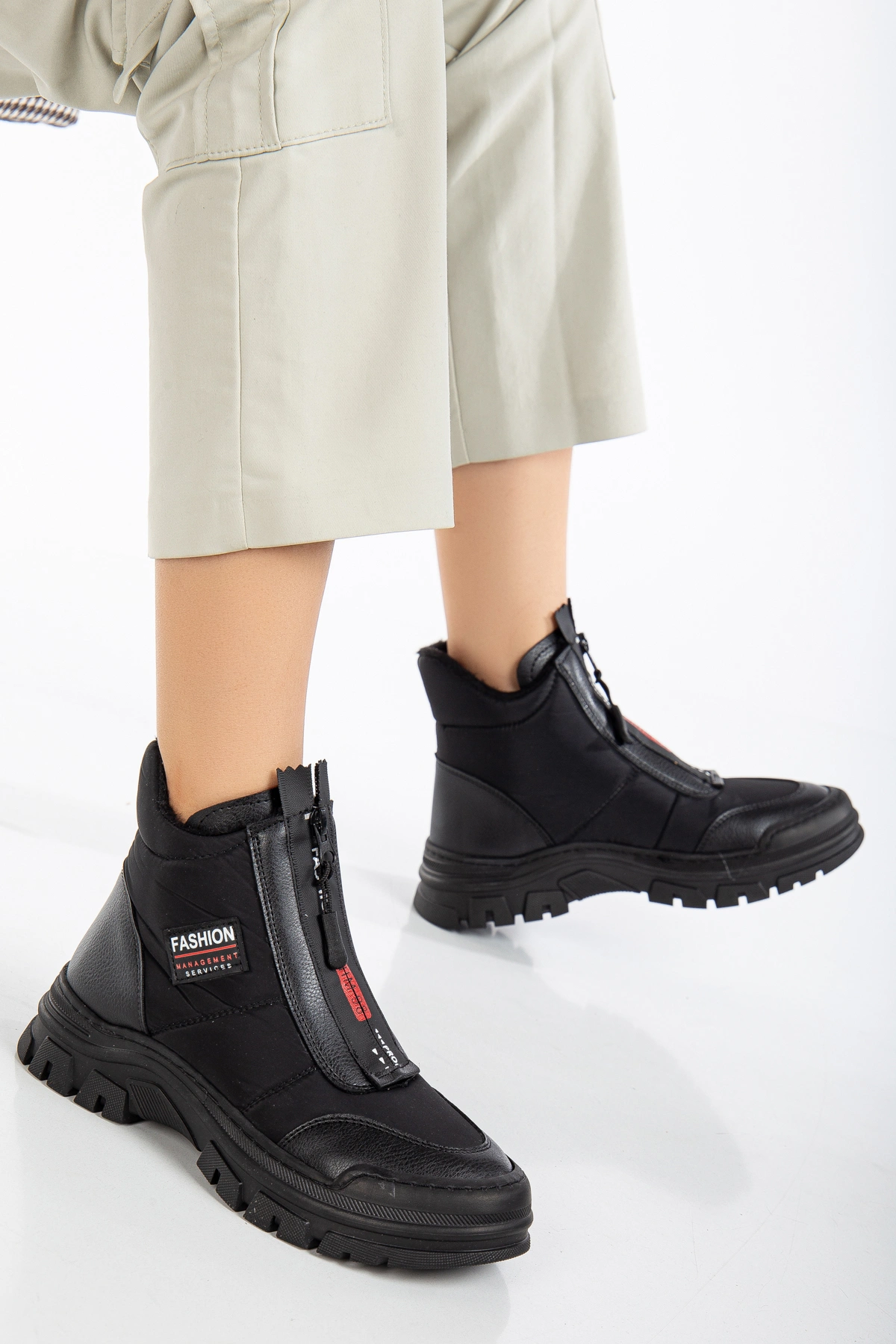 Siyah Su Geçirmez Kışlık Bot – Paraşüt Fermuarlı, Ortopedik ve Dayanıklı Yeni Sezon Bot